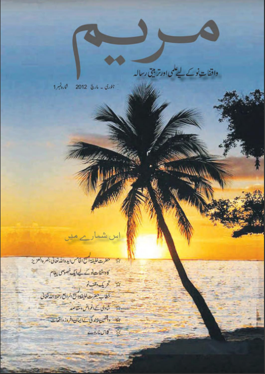 Maryam -Apr-Jun 2012 (Urdu)July 1, 2012Maryam – Jan-Mar 2012 (Urdu)April 1, 2012 Share2 Related postsNovember 19, 2025Maryam Oct-Dec 2025 (English)Read moreNovember 19, 2025Maryam Oct-Dec 2025 (Urdu)Read moreSeptember 2, 2025Maryam July – Sept 2025(English)Read more